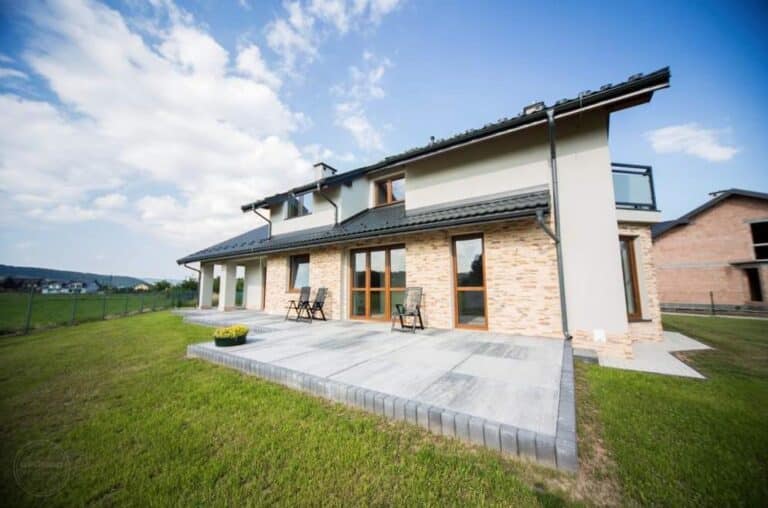 Wykonany z najlepszych materiałów budowlanych na rynku, co pozwoli Państwu na wiele korzyści i oszczędności dzięki przemyślanym rozwiązaniom architektonicznym oraz zapewni funkcjonalność do wygodnego mieszkania dla rodzin. Posesja ogrodzona z furtką i wbudowaną dwuskrzydłową sterowaną bramą automatyczną, podjazd z brukowej ceramiki, podświetlony. Przed wejściem duży taras.